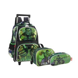 Mochila Rodinhas Marvel Avengers Hulk 3 Ziper + Mascara - Luxcel