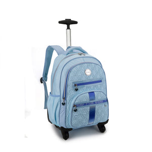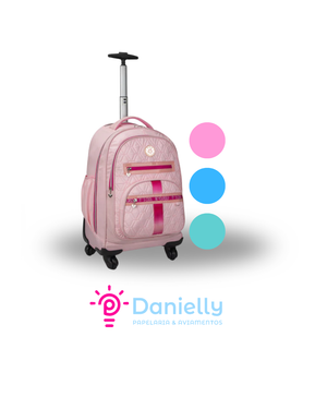 O modelo de 2476 da Kika conta com 4 bolsos frontais e 2 bolsos laterais além de acompanhar chaveiro de pompom. 4 Rodinhas. As alças para locomoção nas costas possuem espaço para serem guardadas enquanto não estiverem em uso e também há espaço para notebook.