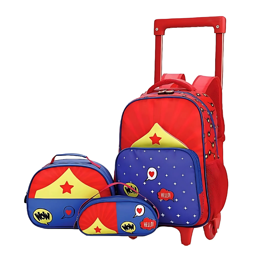 Kit 3 Mochila, Lancheira Térmica e Estojo Escolar Infantil Mulher Maravilha - Ponto Verde