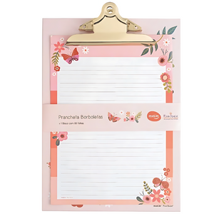 - Prancheta A4 com Bloco de Notas de 80 Folhas Borboletas;